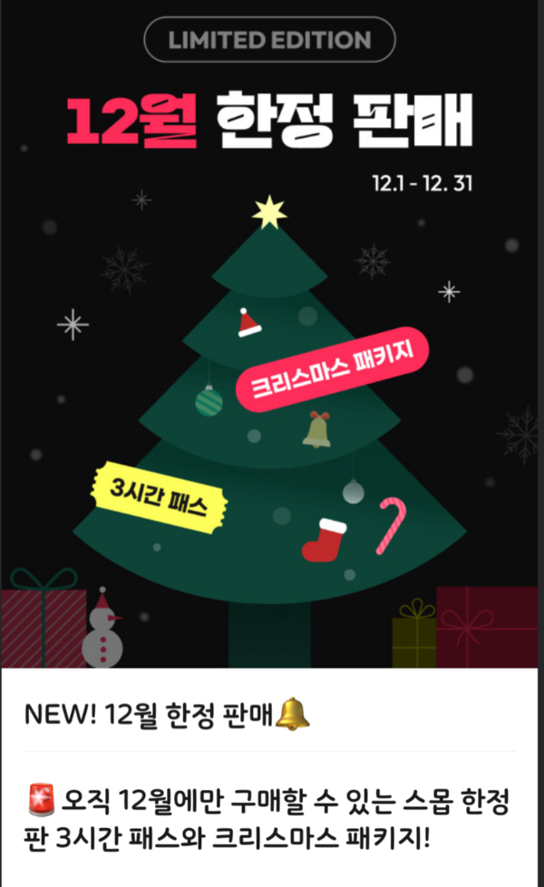 - 한정 패키지 : 12월 한정으로 특별한 패키지 제공
