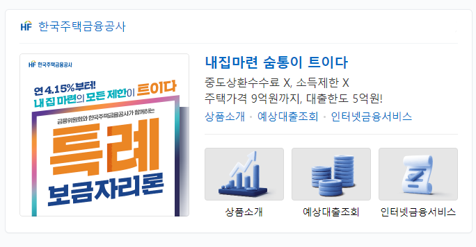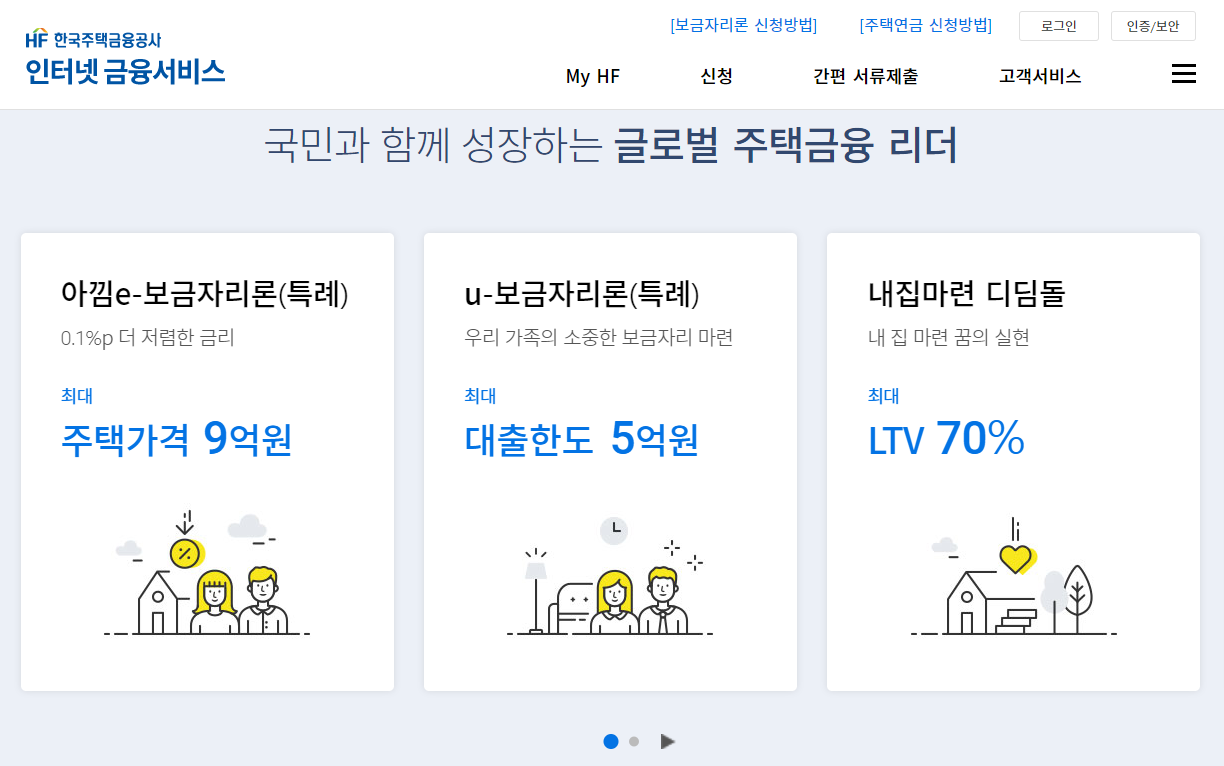 한국주택금융공사 사이트에서 신청 및 이용가능한 정부자금정책 볼 수 있어요.